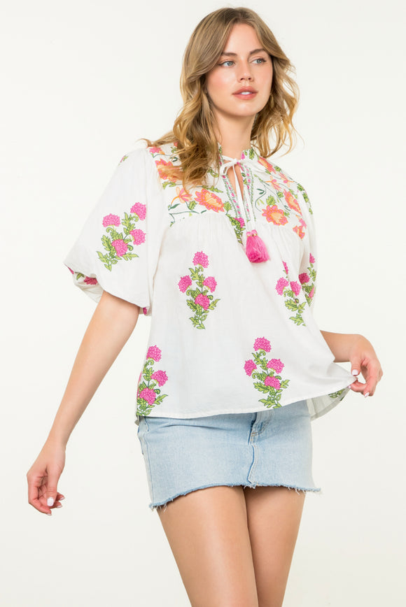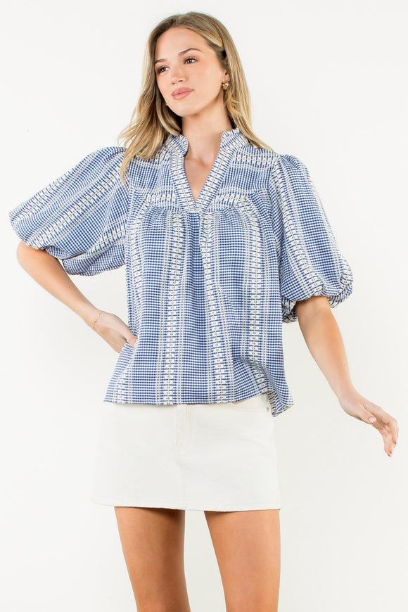 THML Eleonor Puff Sleeve Velvet Detailed Top