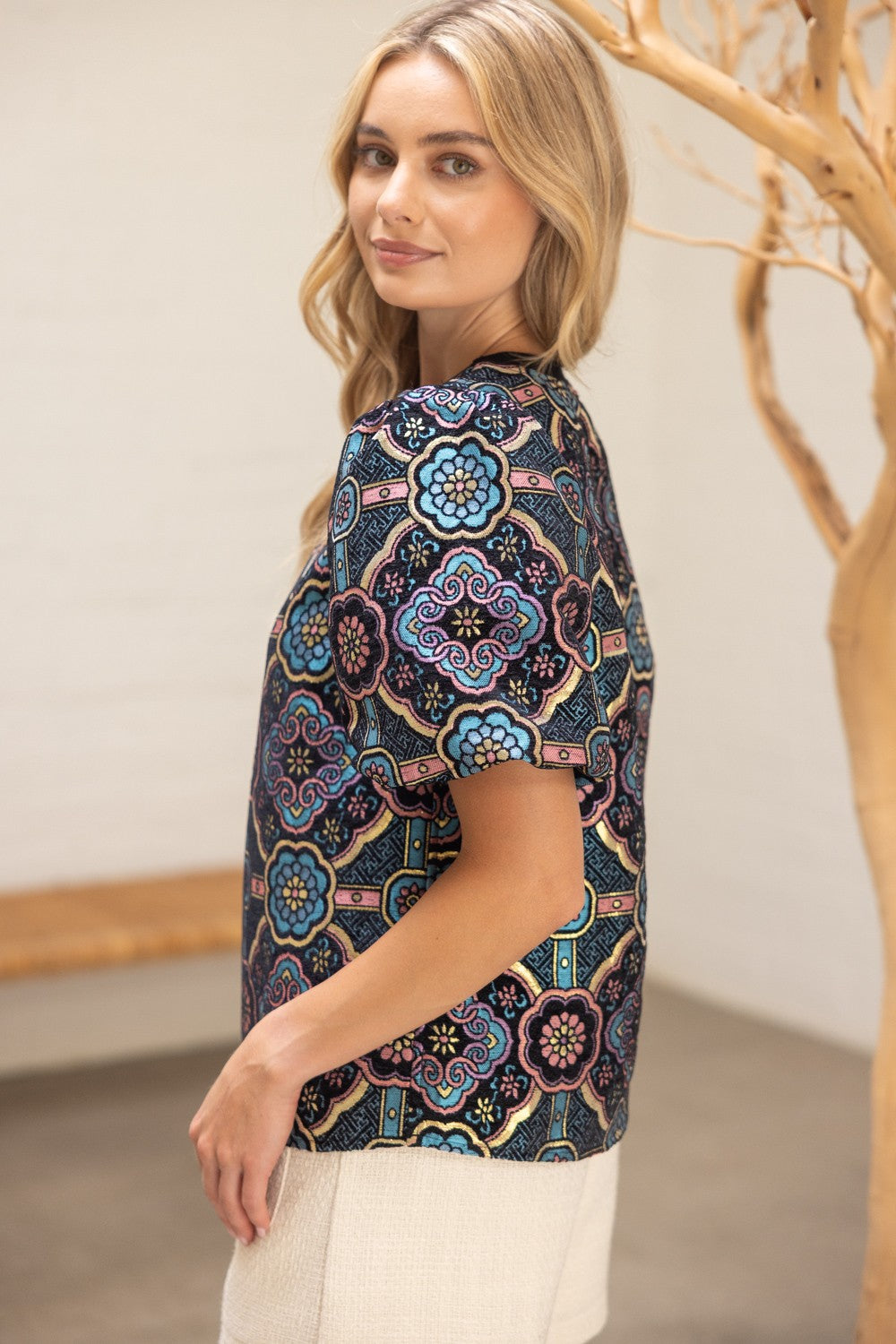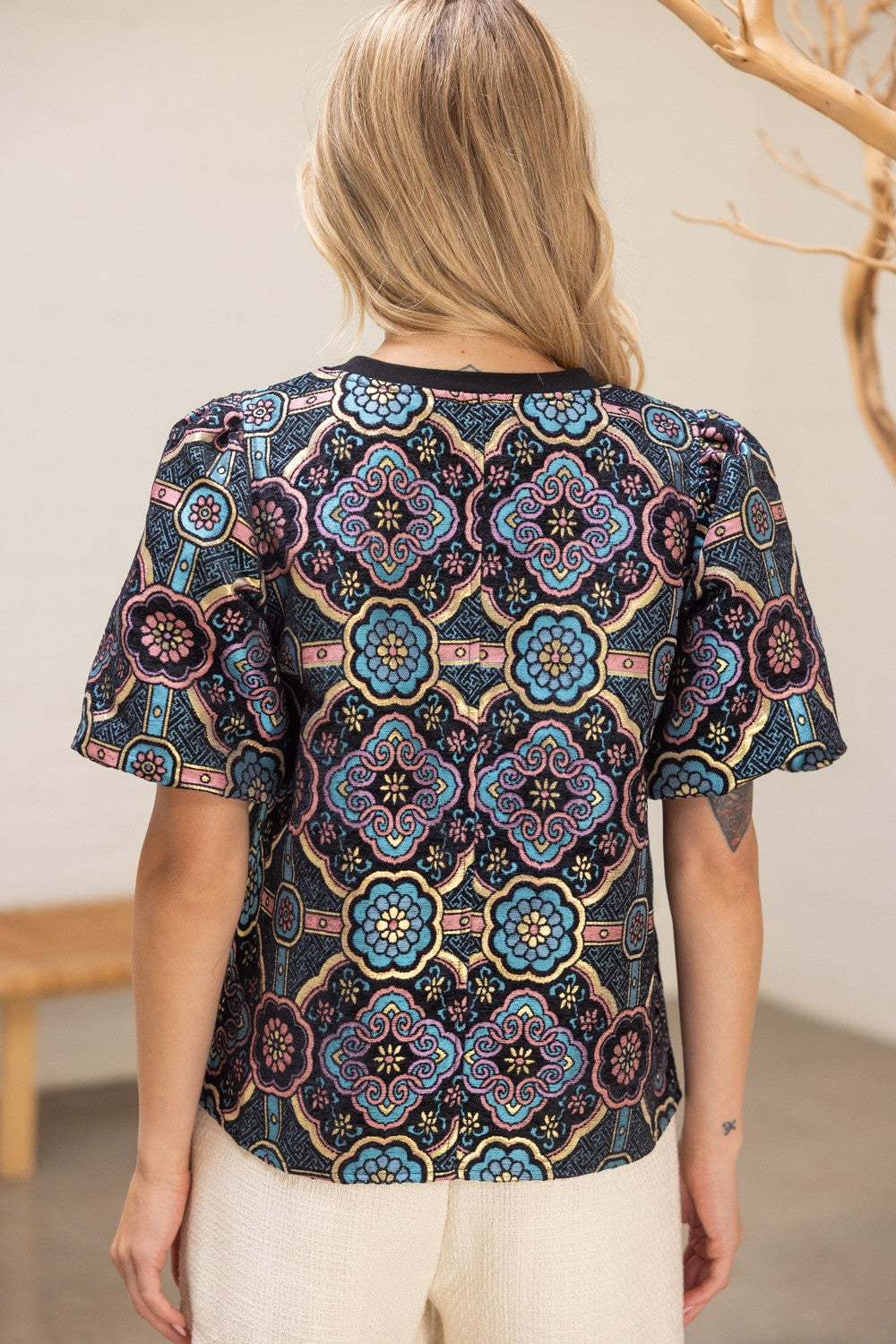 Alexis Puff Sleeve Mandala Jacquard VOY Top
