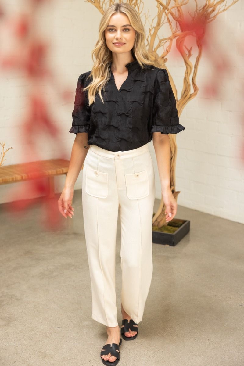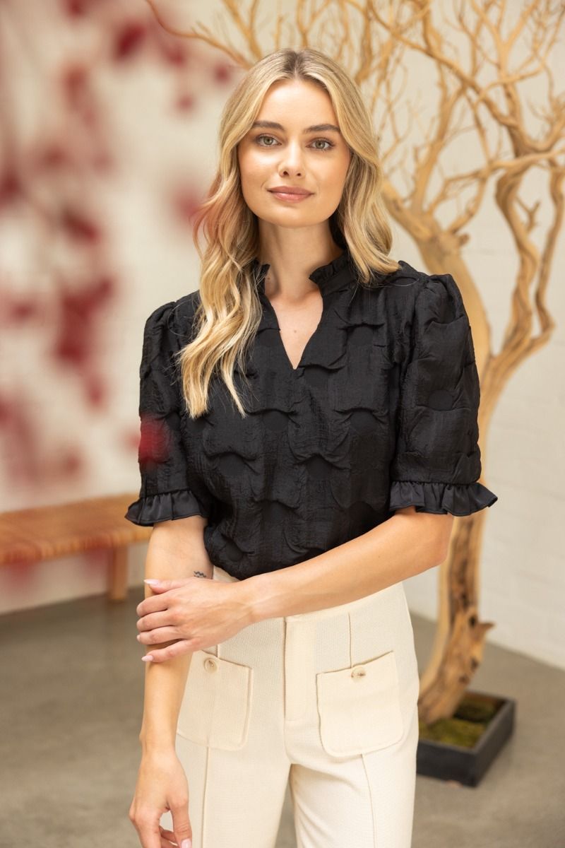 Marlene Satin Ruffle Detail Dotted Texture VOY Top