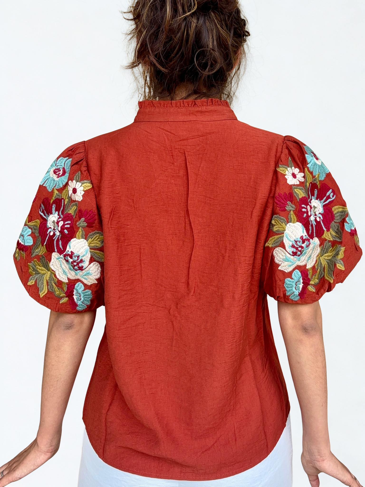Patricia Embroidered Detail Puff Sleeve THML Top