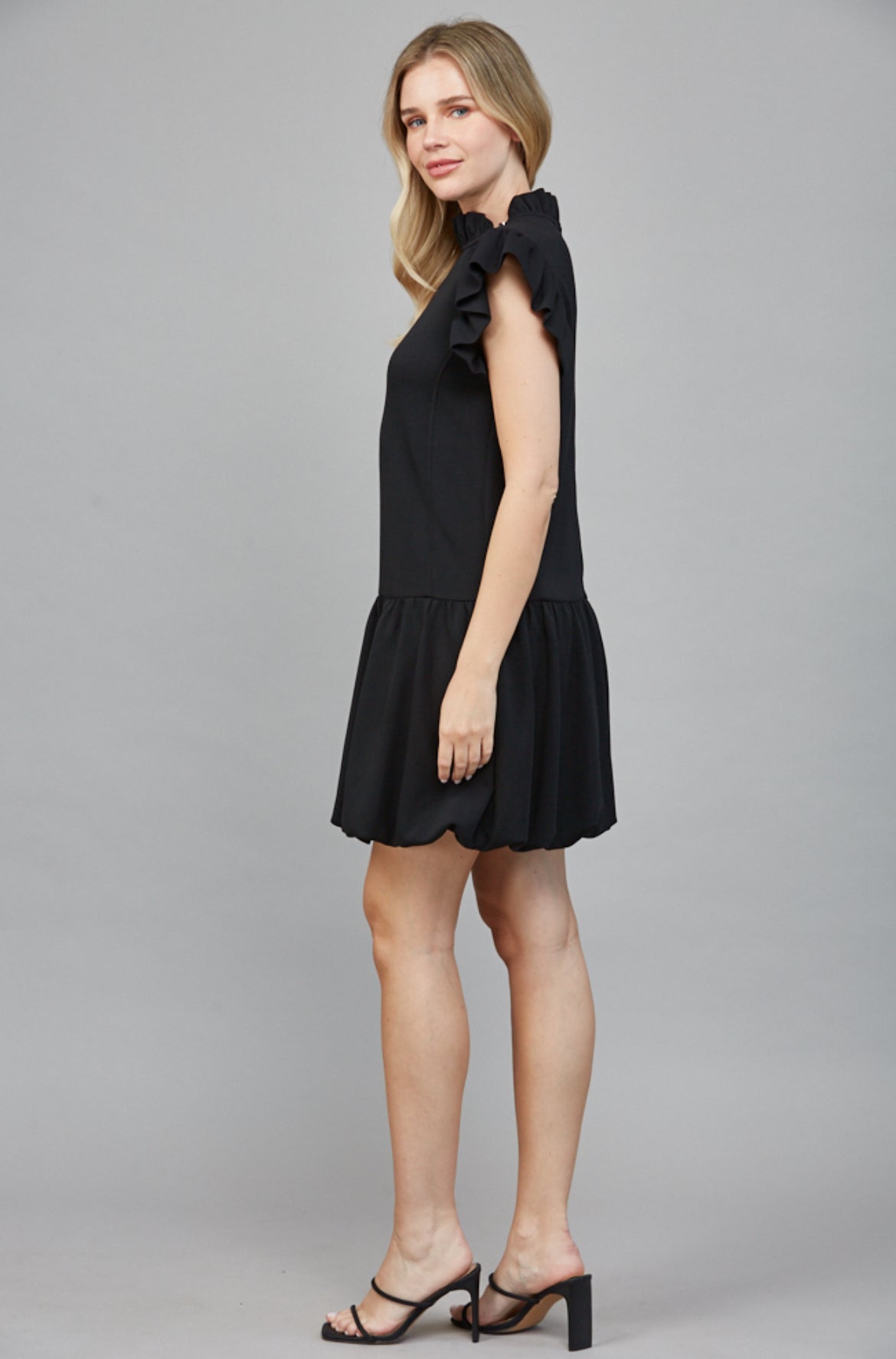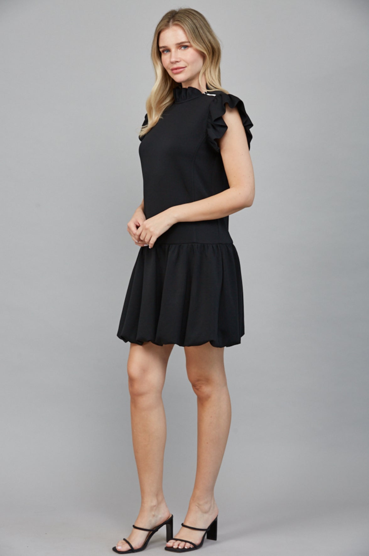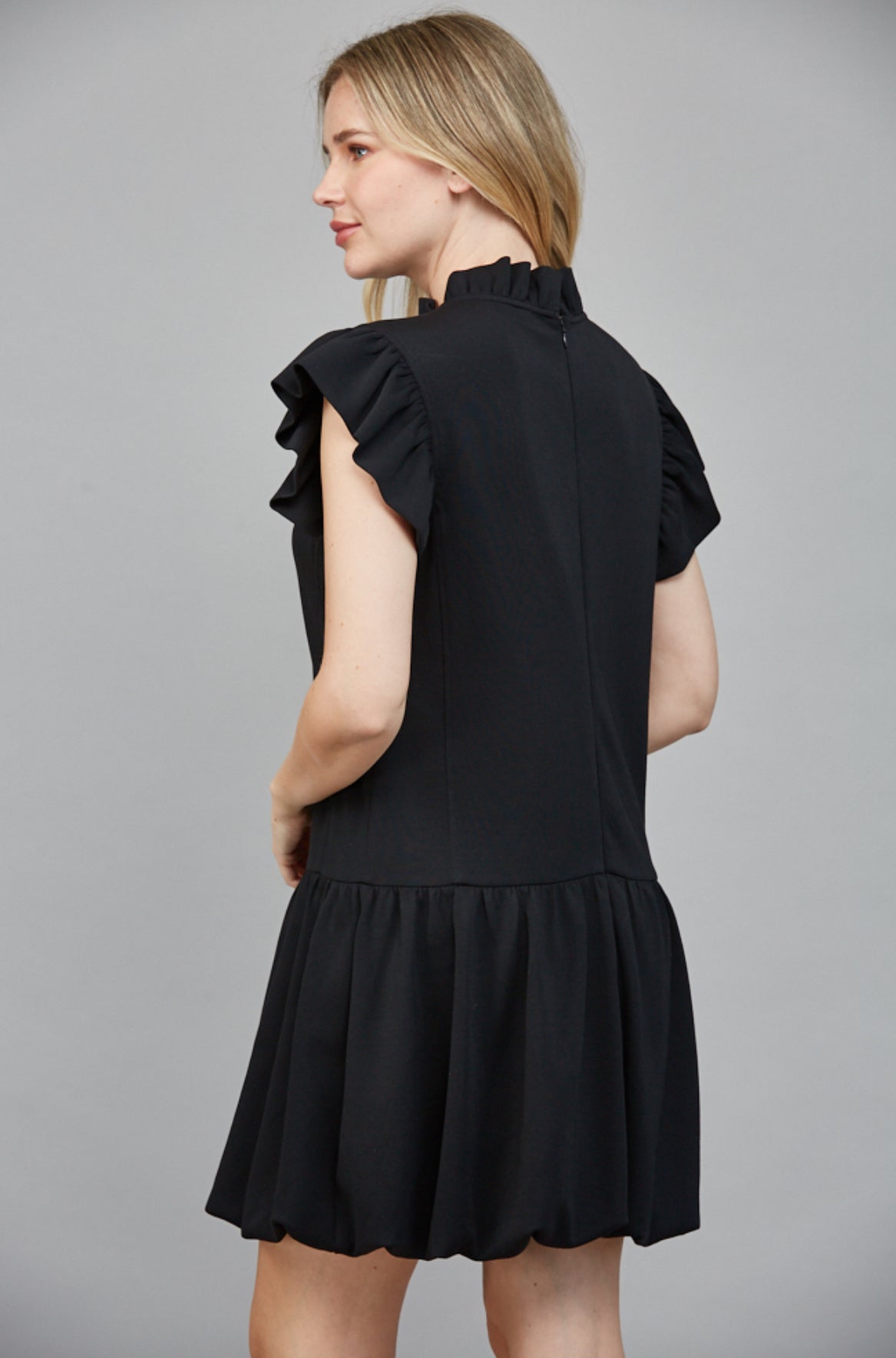 - SHOULDER ZIP TRIM RUFFLED HIGH NECKLINE BUBBLE HEM DRESS