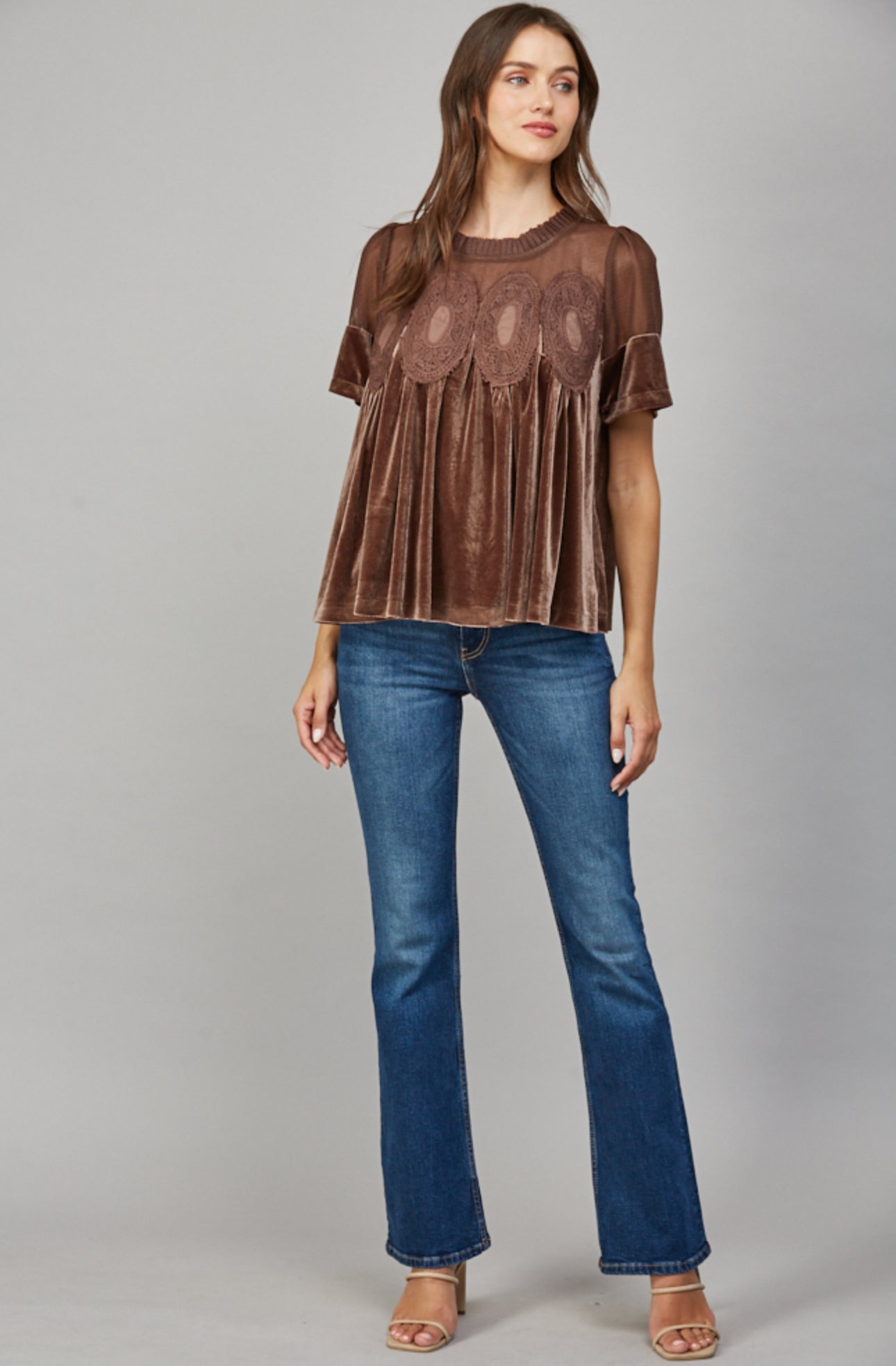 Marcie Lace Detail Velvet Babydoll FATE Top