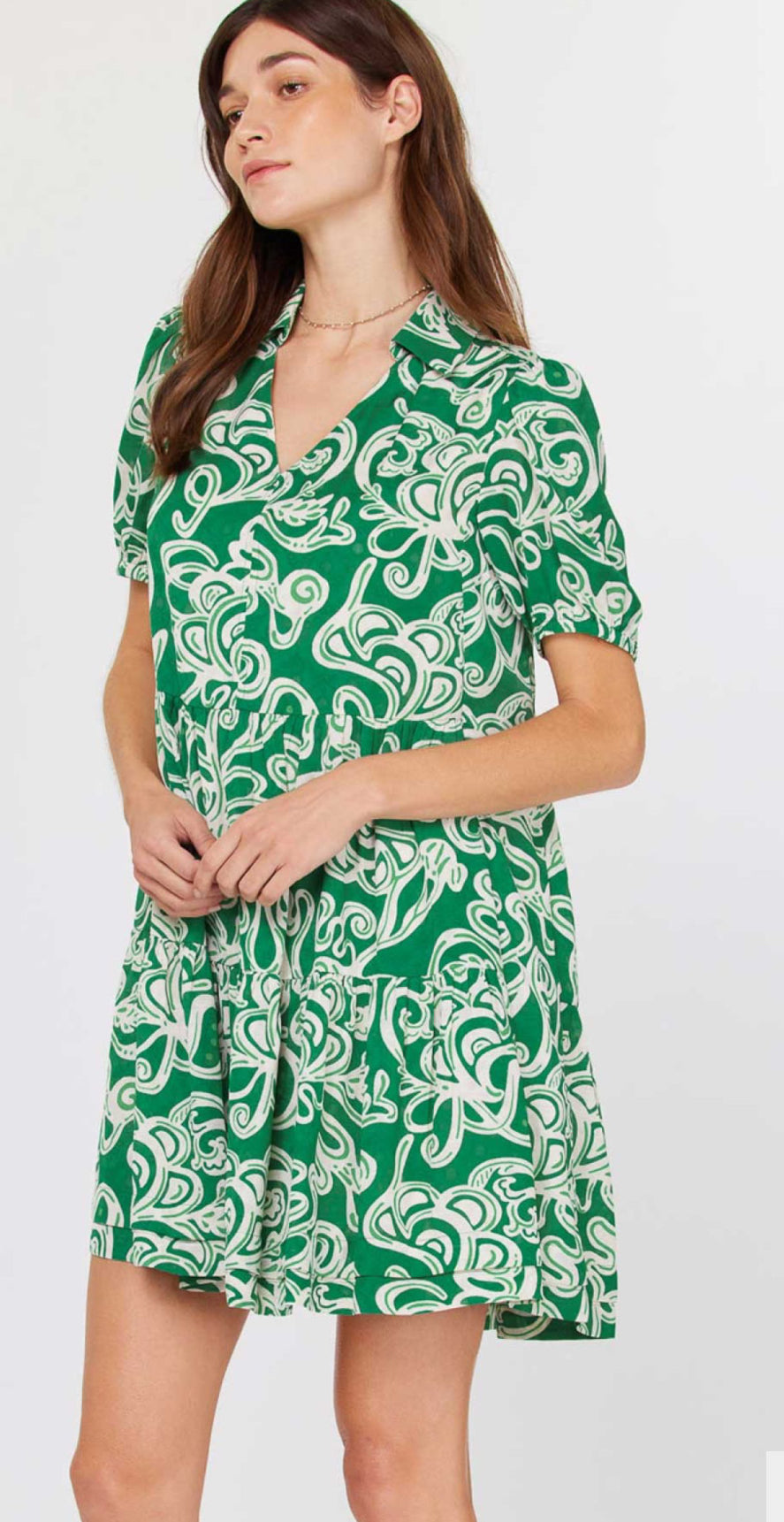Caroline Green Print Short Current Air Dress- SALE