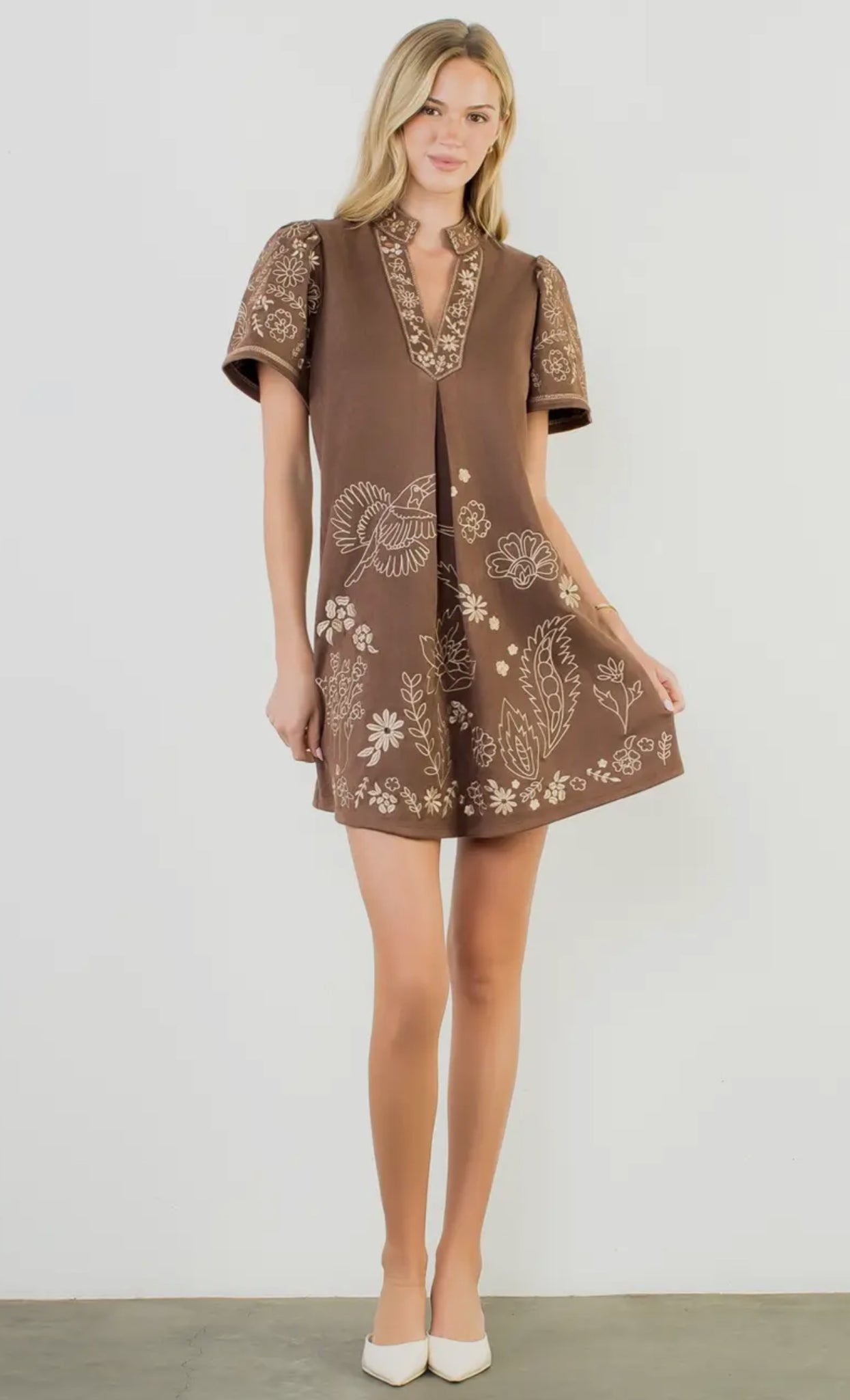 The THML Vanessa Short Sleeve Embroidered Detailed Dress features beautiful all-over embroidery paired with a flattering, easy-to-wear silhouette. Designed with short sleeves and thoughtful detailing throughout, this dress offers a perfect balance of comfort and elevated style. The soft stretch fabric allows for effortless movement, making it an ideal choice for daytime events, casual gatherings, or dressed-up everyday wear.