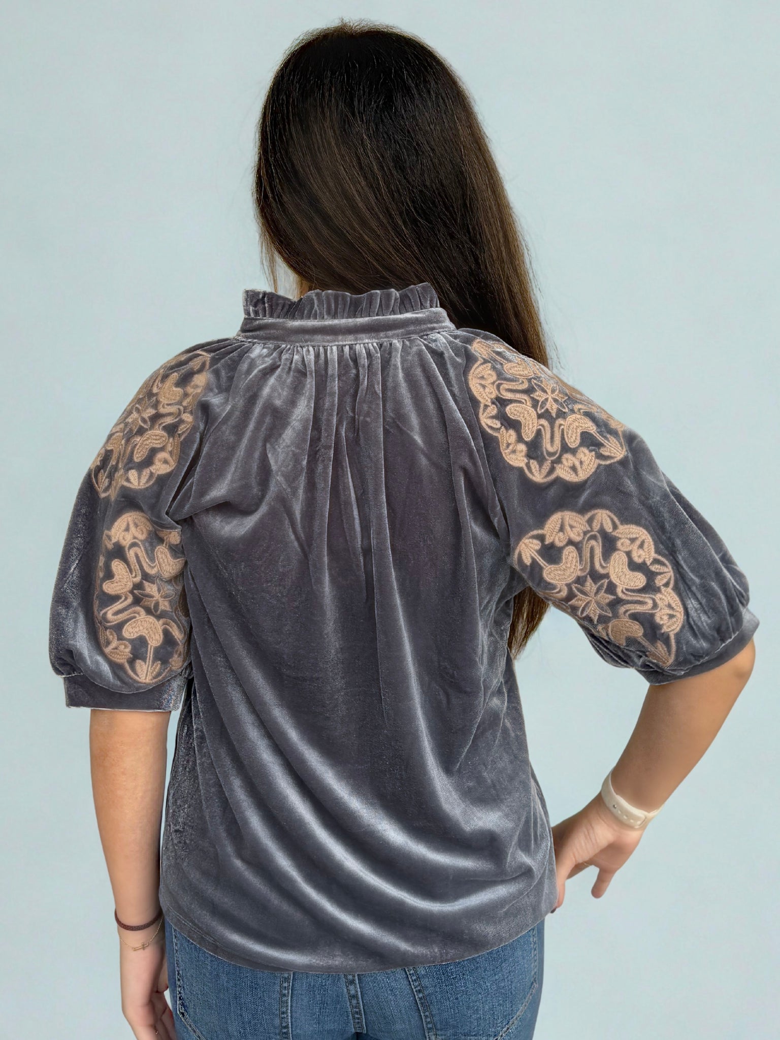 Agusta Puff Sleeve Embroidered Detail THML Top