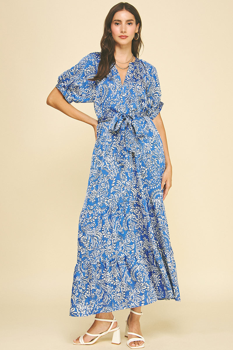 The PINCH Harper Damask Print Maxi Dress is a timeless, elevated maxi designed with both style and function in mind. Featuring a v neckline, adjustable self-tie waist, and a flowing tiered skirt, this dress offers a flattering and comfortable fit. Side pockets add a practical touch, while the allover print brings effortless boutique charm. Perfect for brunch, casual events, vacations, or everyday wear, this maxi dress pairs beautifully with sandals, wedges, or boots for a versatile, year-round look.