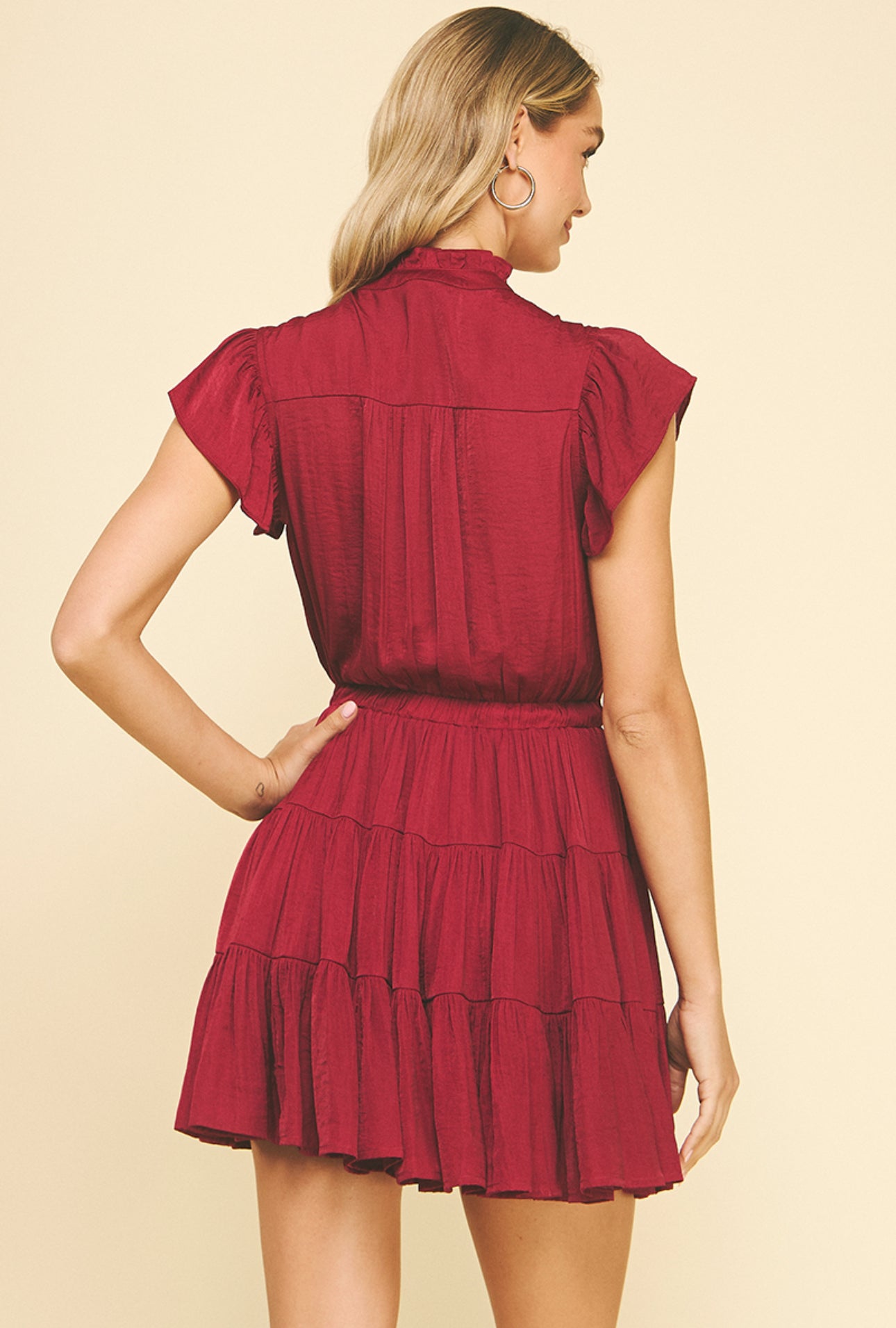 BUTTON DOWN TIERED MINI DRESS