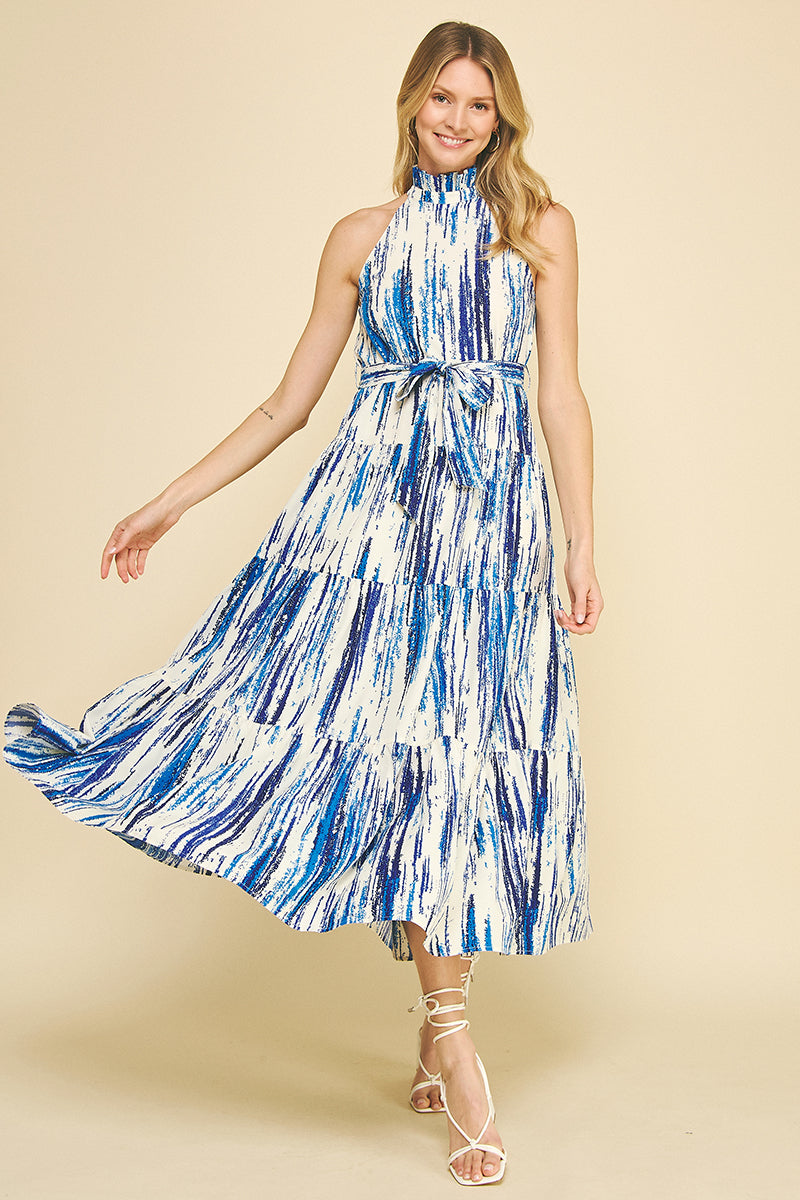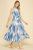 Mina Blue Print Halter Neck Maxi PINCH Dress