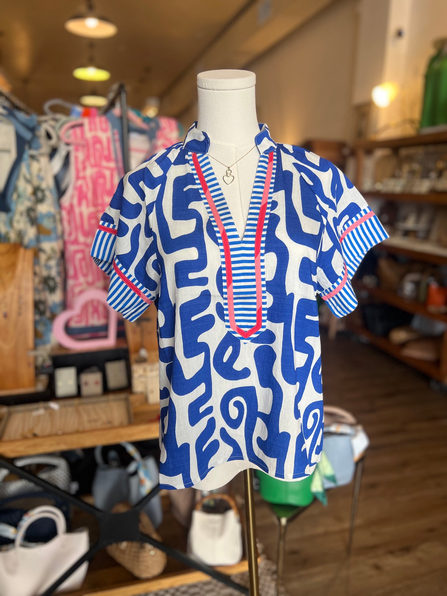 THML Gabrielle Short Sleeves Abstract Pattern Top