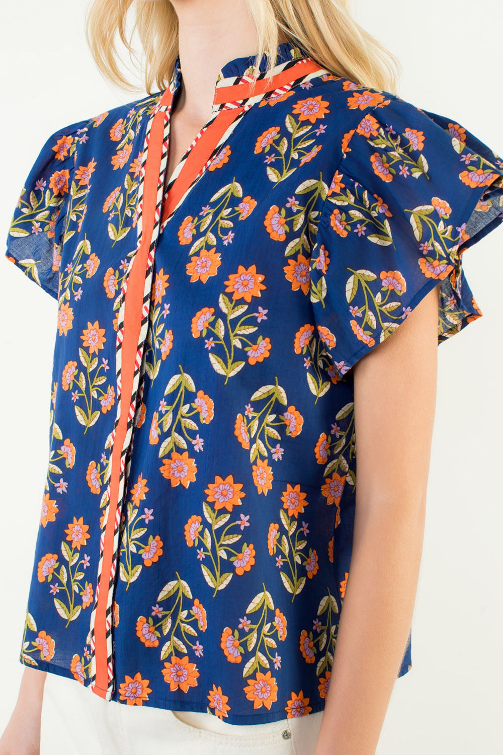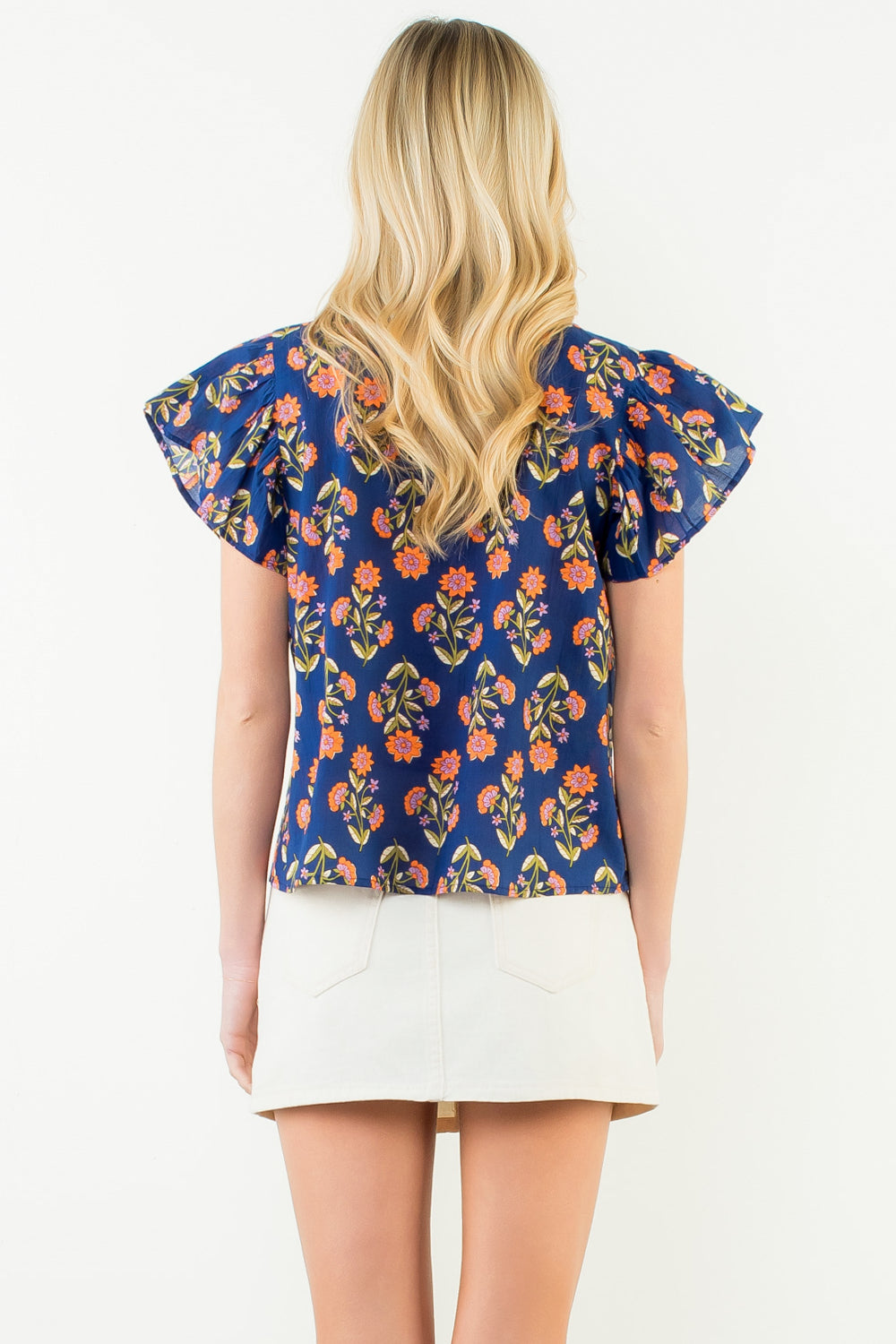 The THML Drea Ruffle Sleeve Floral Pattern V-Neck Top is a feminine, statement-making piece designed with effortless charm. Featuring dramatic ruffle sleeves, a flattering V-neckline, and a lightweight woven cotton fabric, this top offers a breezy, relaxed fit with elevated detail. The soft floral pattern adds a romantic touch, making it perfect for spring and summer styling. Pair it with denim shorts, white jeans, or a skirt for brunch, vacations, or everyday wear when you want an easy yet polished look.