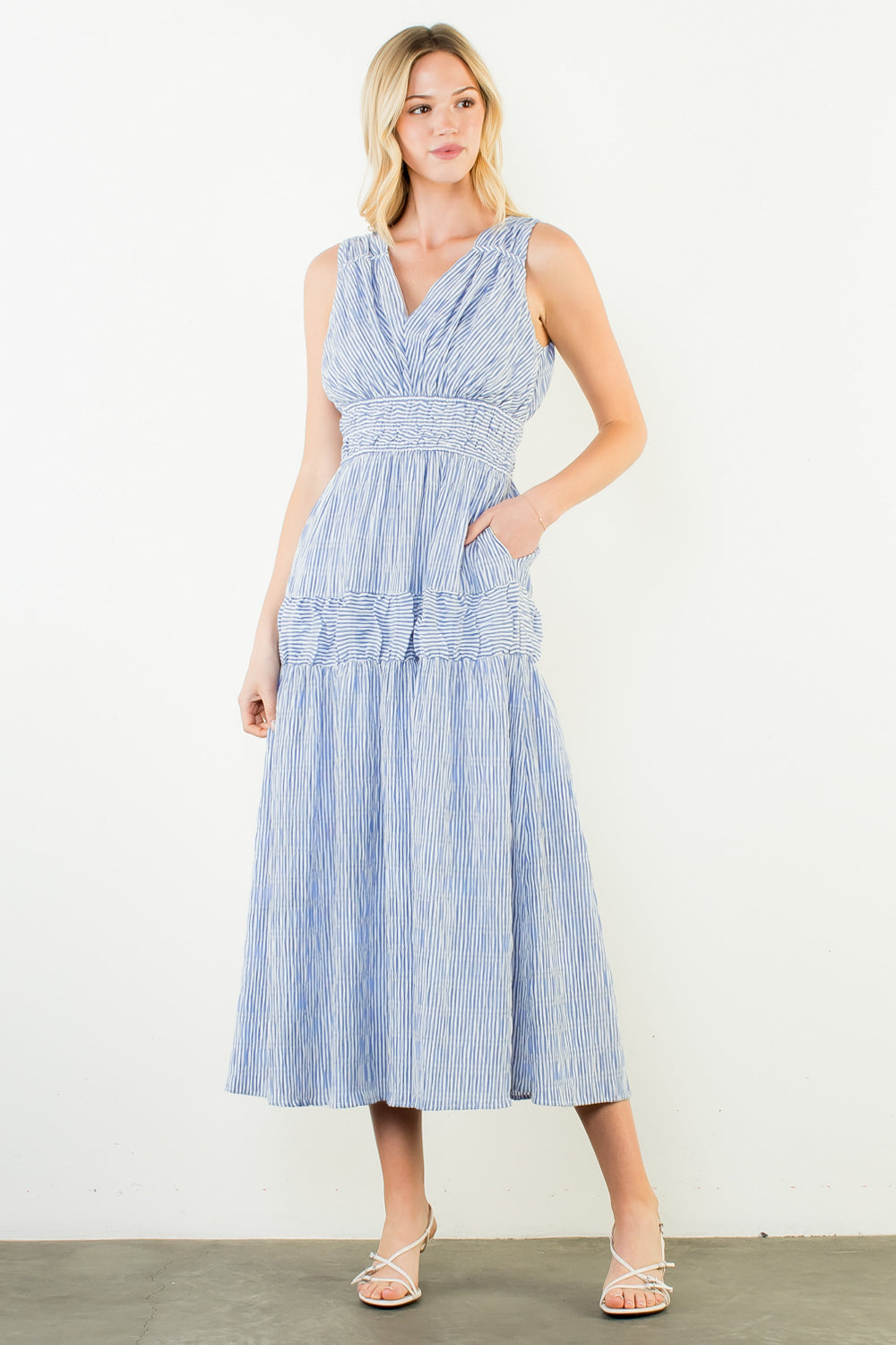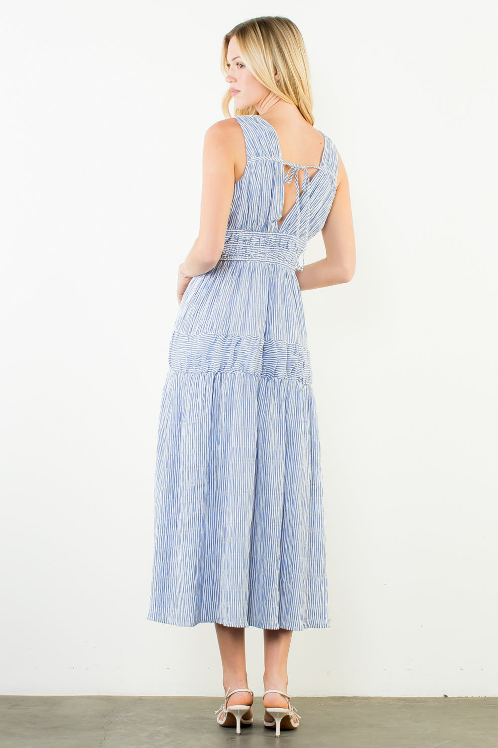 THML Surith Sleeveless Verticak Stripes Tiered Dress