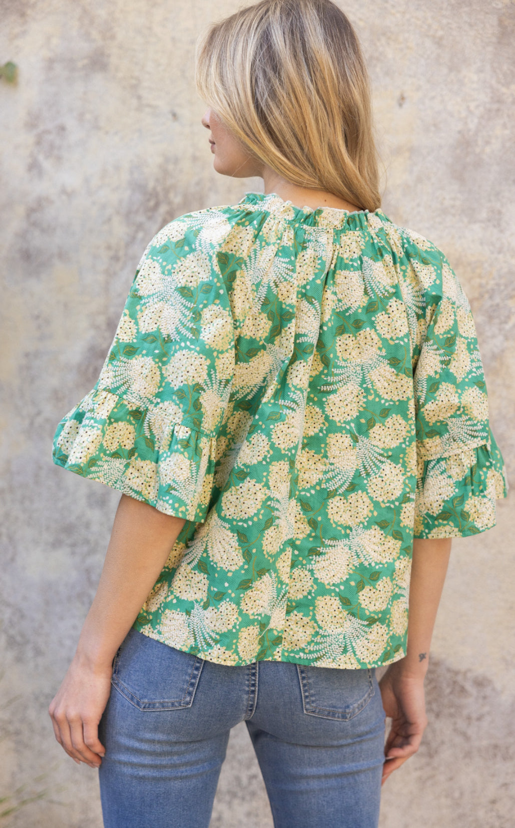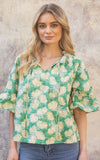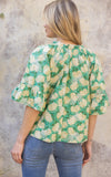 Carlie Green Printed Open Sleeve VOY Top- SALE