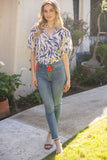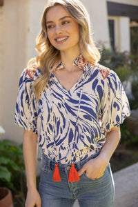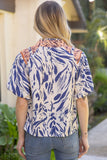 SMOCKED NECK AND SHOULDER DETAIL PRINTED TOP