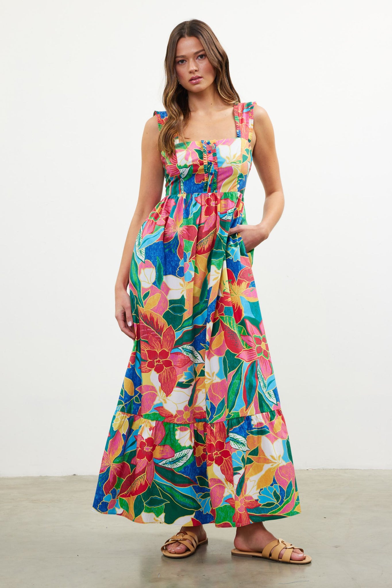 - PRINTED RUFFLE TIERED MAXI DRESS